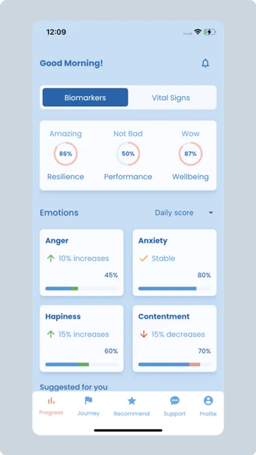 WellShift is an app that pairs with your wearable or works alone and uses advanced biofeedback technology and cognitive behavioral therapy principles to help you regulate your emotions, 'The coach in your pocket.' And it does NOT replace mental health care. It processes them to define your emotional states, well-being, resilience, productivity, and abnormalities in your vitals or states.