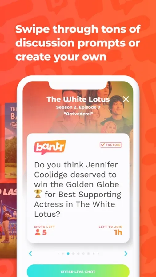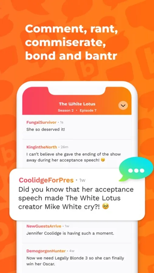 Let’s talk TV! Bantr is a social network for television fans. Comment, rant, commiserate, bond, and bantr about the shows you love with other fans who love them, too. Swipe through episode-specific discussion topics and join small group conversation or create some prompts of your own and get bantring.