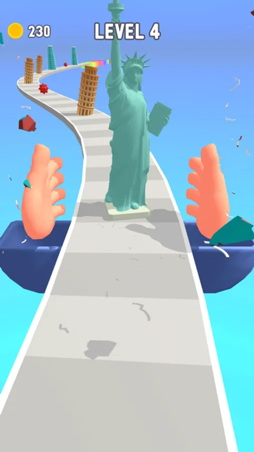 Hold the hands and crush all the objects! Avoid unbreakable objects. If you push too hard, you may break your hands. Collect all the broken pieces and use it to create your path.