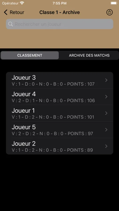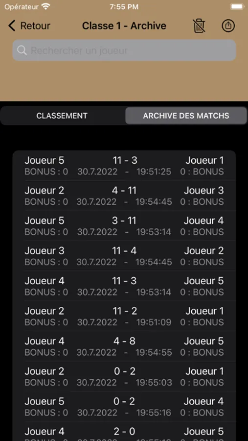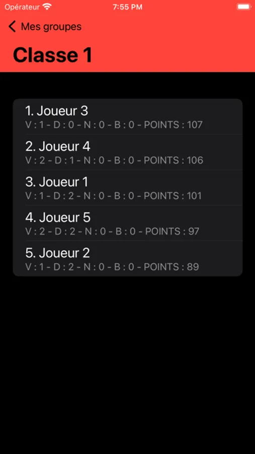 L’application permet de saisir très rapidement le gain ou la perte des matchs. Le classement se met à jour automatiquement. Il est possible de créer des classes ou des groupes de niveau ou des classes avec groupes de niveau.