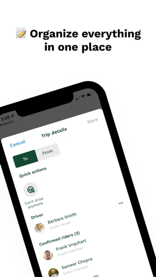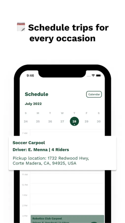 3. Schedule and Ride — See who’s driving, who’s riding, the pickup location, and time. Schedule repeat trips or for single days.