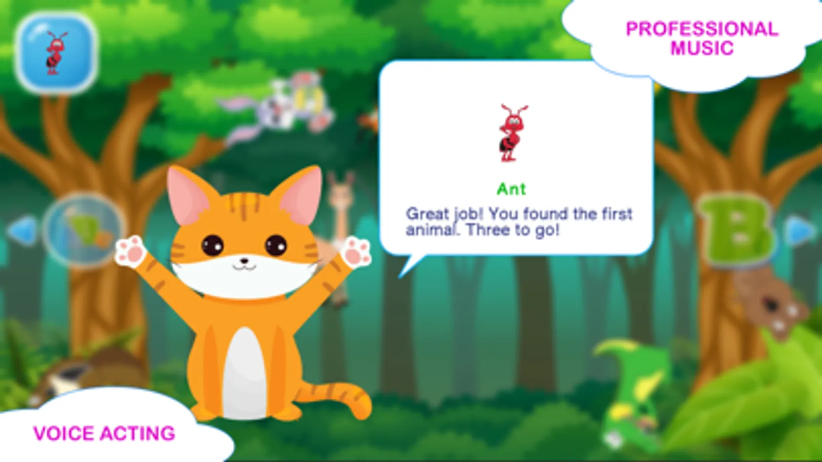 ‘Cat Alphabet: English ABC Kids’ is definitely a fantastic game which combines elements of education, memory training and attentiveness improving with entertainment and joy. Game developers dedicated a lot of effort to details, style and filling. Professional music and voice acting are implemented in the game, along with colourful and bright design. The main character and future best friend of your child is Baxter the cat. We have to admit that he is extremely cute and funny, and he even has a real life prototype - a favourite pet of our developers. While playing our game your child will discover the magical world of learning the English alphabet with the help of more than 100 unique animals, which will cause unimaginable delight.