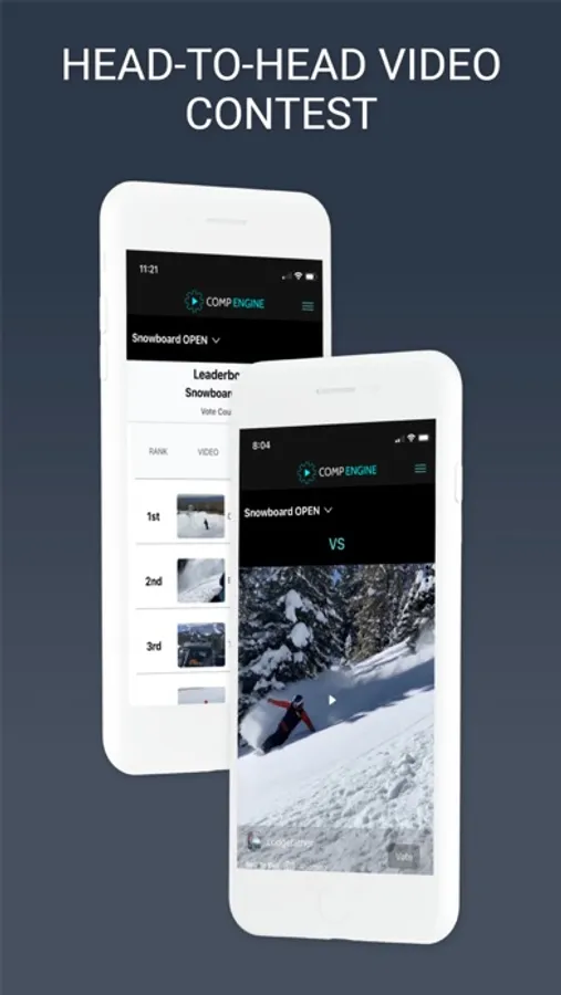 CompEngine is designed to find the best video in a head-to-head competition. Upload your best clip, vote for your favorite videos, or just sit back and watch the winner be chosen.