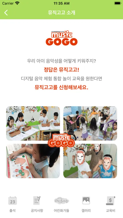 어린화가들의 학부모 필수앱! 어린음악대 학부모앱입니다.