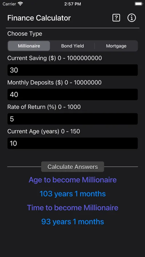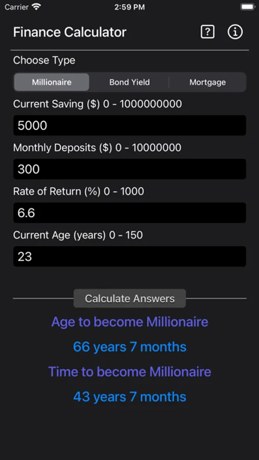 Use this calculator to see what it takes to reach a million dollars and reach your goal to be a millionaire. Factors include your current saving, monthly deposits, rate of return and current age.