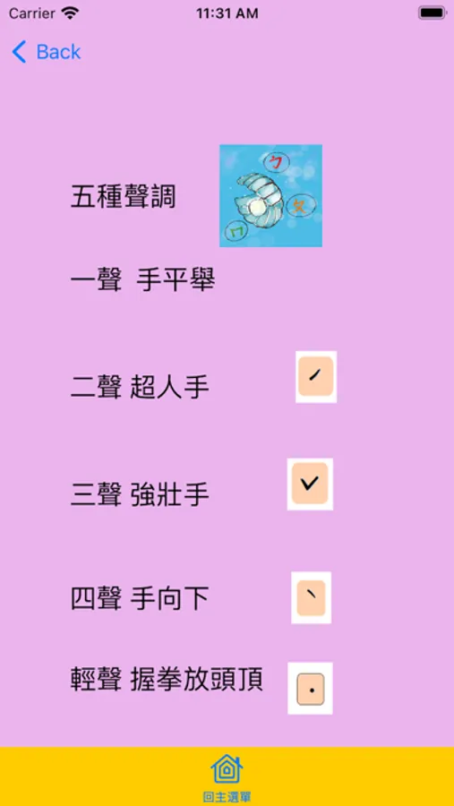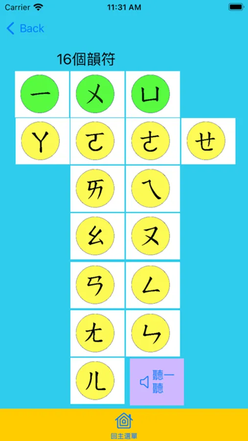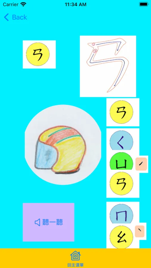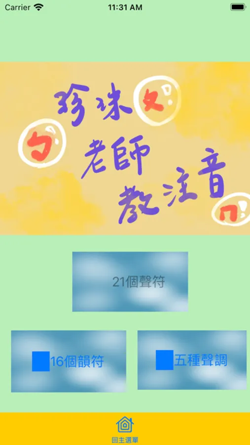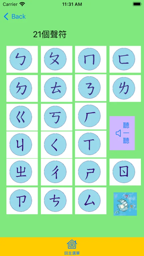1.教導學生注音符號,了解21個聲符,16個韻符,五種聲調。