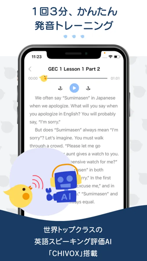 ・端末のマイクを使って発音し、AIによる評価を受けることができます。