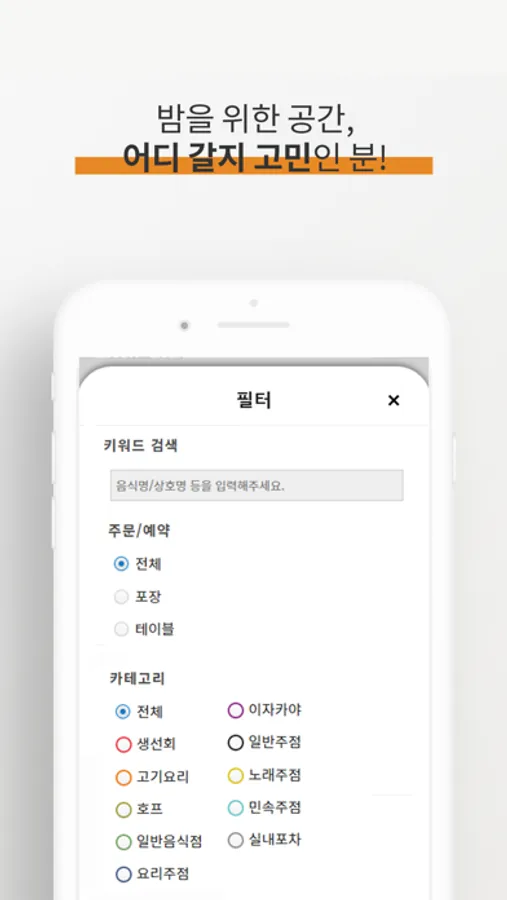 밤이야 앱에서는 술집, 주점의 테이블 예약 및 포장 예약도 가능합니다.