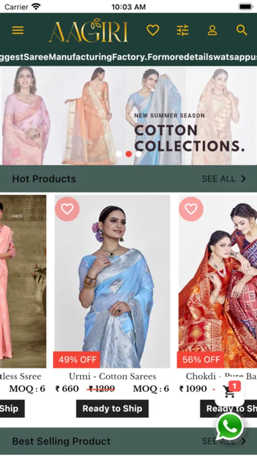 Aagiri is a leading women's Indian clothing manufacturing company based in Kolkata, West Bengal, India, that has served millions of custimers over the years. Aagiri Specialising in the manufacturing of sarees, kurtis, salwar suits, party wears, and much more. This website offers the added benefit of allowing our buyers to order wholesale Indian Women's clothing without having to visit our factory. We've come up with a list of the most popular designes of women's fashion catalogs that are now trending. Indian traditional women's dresses are popular not only in India but also in other parts of the world where there is a demand for low-cost wholesale clothing, the good news is that we provide both of these services as well as shipping to all of those countries. Aagiri is the Leading wholesale saree market in India