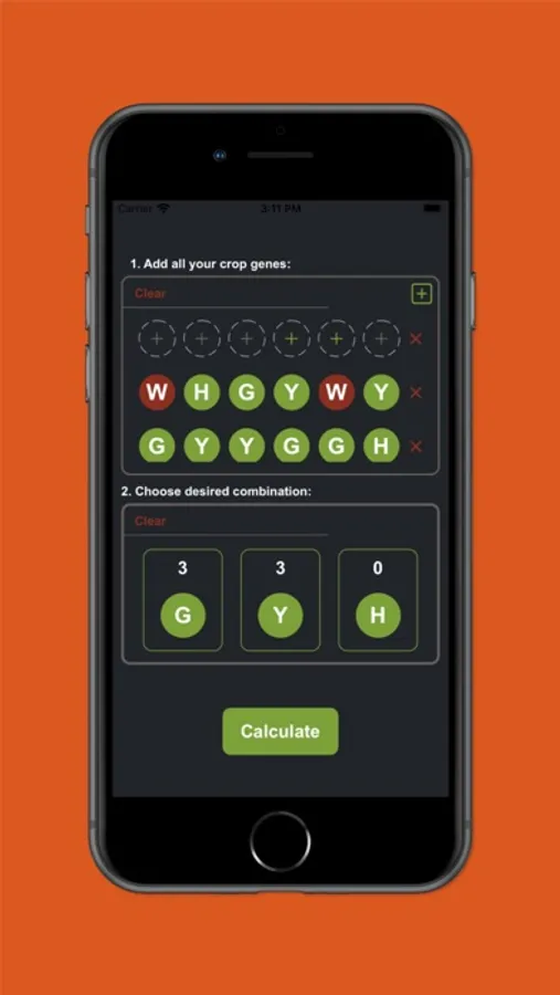 Just add to the application all the plants you have and choose which genes you want to breed in the new plant and the application will calculate which of your plants you should use to get you as close as possible to the desired result!