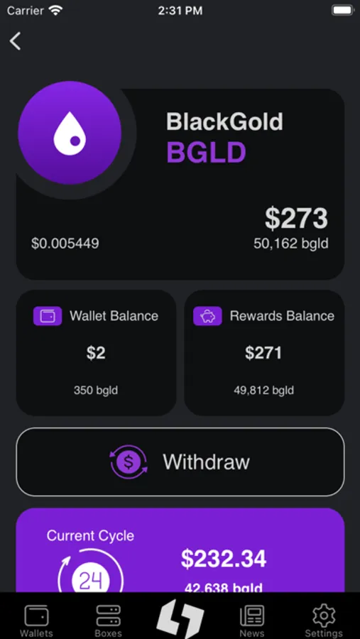 From the mobile app you can see your rewards, withdraw them, transfer your tokens on the wallet, manage your boxes, and keep up to date with the latest news!