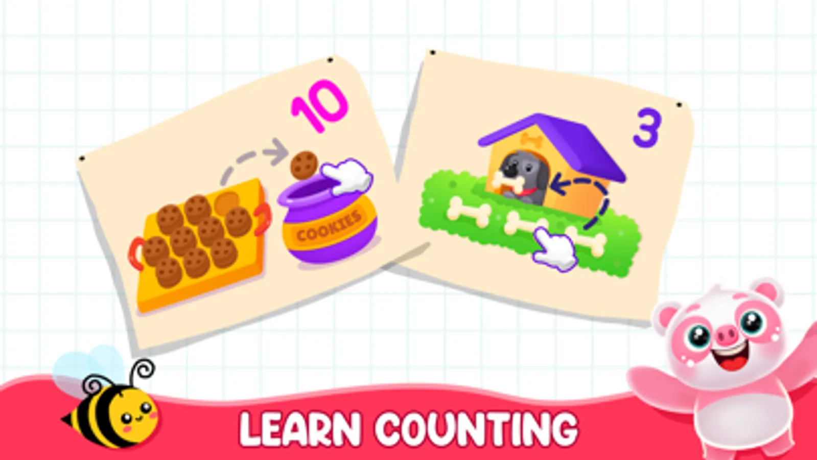 Kids number games is a game to learn basic 123 numbers for toddlers and enjoy tracing in a playful manner with 123 learning games for kids. Kindergarten learning games which will help your child to learn to count at an early age in educational games for preschool. While playing count and tracing your child will learn to write numbers with several types of objects in counting games for kids. This numbers learning app for kids is filled with fun and customizable game options for children to focus on 123 kids games but at the same time kids will be captivated by the bright graphics, funny sound effects and other entertaining factors in this kids number game for toddlers.