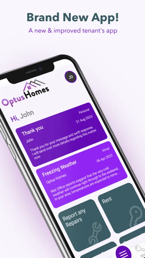 The Optus App is designed to make accessing services and information easy for tenants. It's simple to report repairs, schedule repair visits, view your rent information, exchange messages with your landlord, and feedback your opinions via surveys or suggestions.