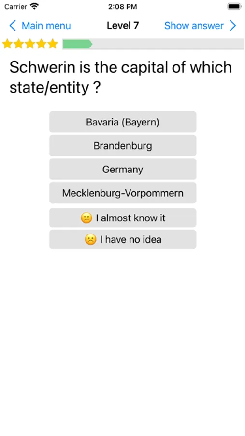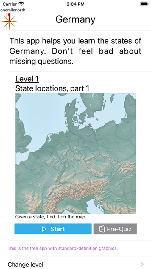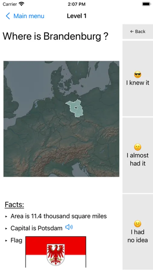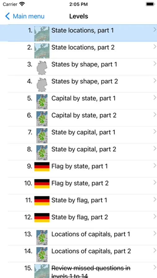 Play it as a game, where each level teaches you a new topic. Missed questions will be repeated until you learn the item and you can review them later. Pronunciation samples for states and capitals are included. We're trying to make learning easy!