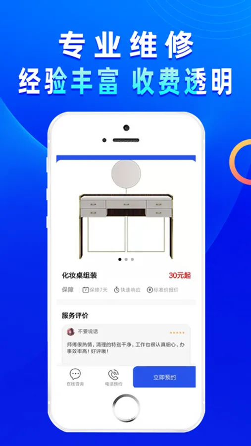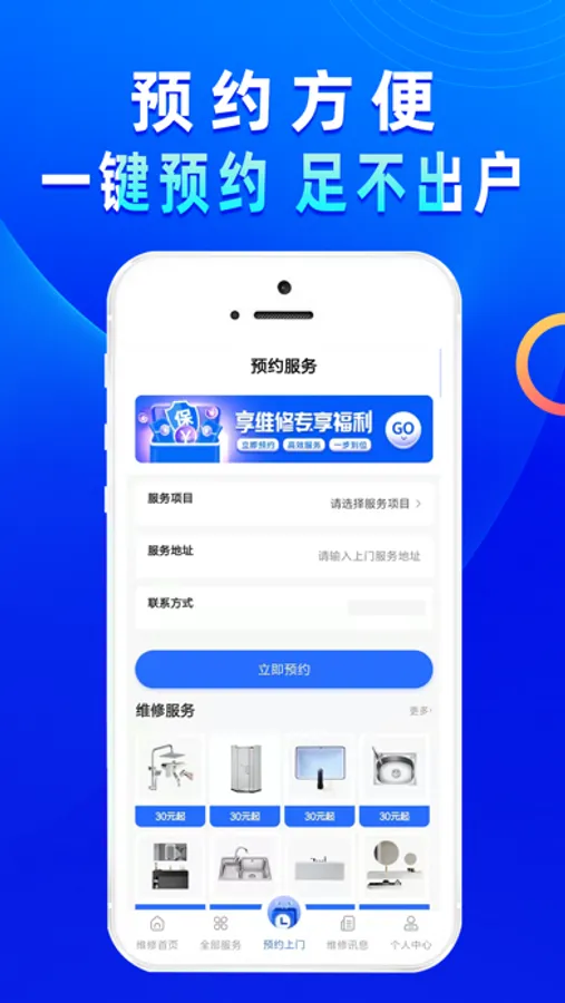 【线上预约,方便快捷】用户可通过APP一键预约下单,极速上门维修;