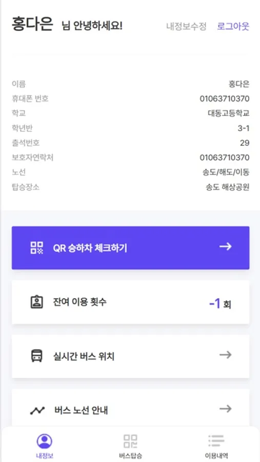 가람관광여행사에서 운영하는 통학버스의 승차를 관리합니다.