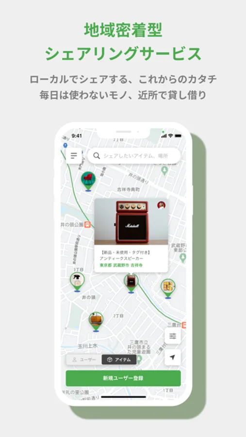 アイテムの貸し出しは、「1日」単位でも「1回』単位でも設定でき、料金は0円でも有料でも任意の金額を設定できます。自分が使ってみて便利だったもの、今は使っていないけど捨てるには惜しいものをどんどんご近所さんに公開してください!もちろん、登録は無料で、借りたい人からのリクエストを有料で受けたときにのみ、プラットフォーム利用料がかかるだけ。受け渡し場所は、リクエストを受ける前にひと目のつくパブリックなスペースを指定できるので安心です。