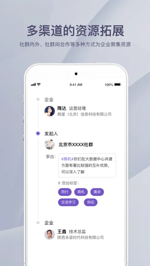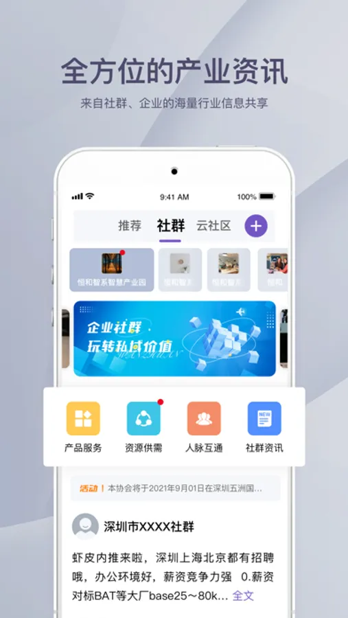 商屋是一款以企业级社群数字化管理为基础,实现各社群之间共建、共享、共商,同时通过社群及其成员互动数据沉淀,基于平台大数据推荐算法,为企业提供多元化服务,赋能企业市场化发展的全产业链互联网平台。