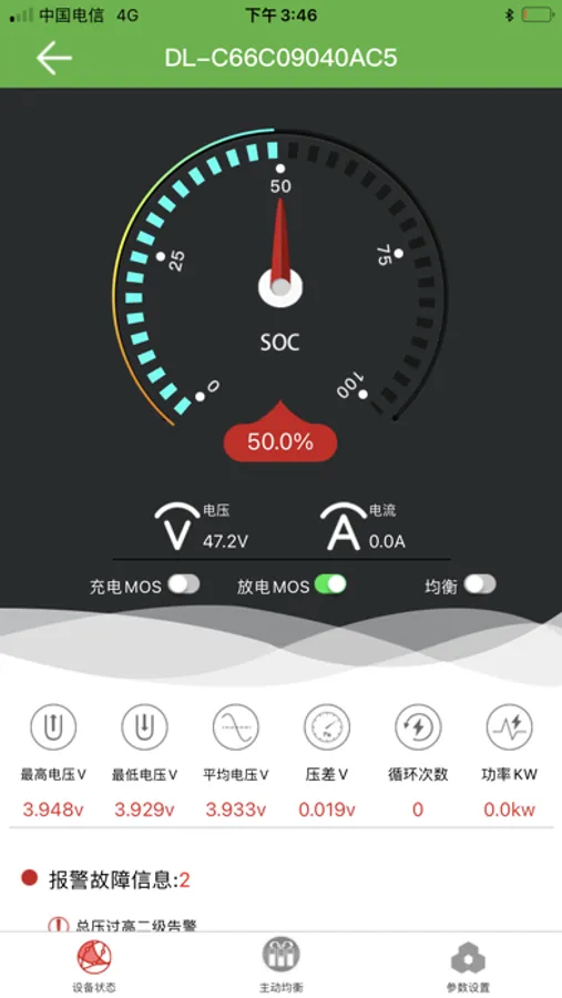 4、监控电池故障告警,显示出电池当前发生的故障及故障数量。