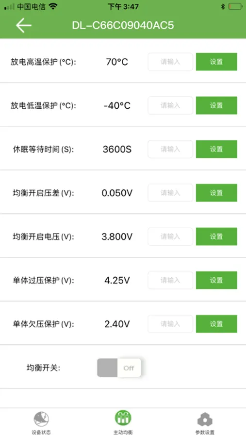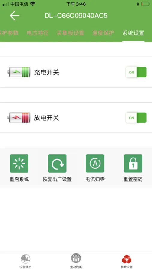3、安全设置和读取电池保护参数,用户设置参数,需输入密码才能修改参数。