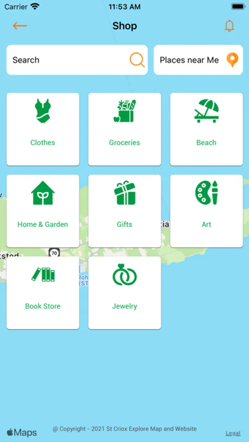 Use the St. Croix map on the homepage to click on your area and see what businesses are nearby. Use the search bar on the homepage to search for a specific tour, place, or