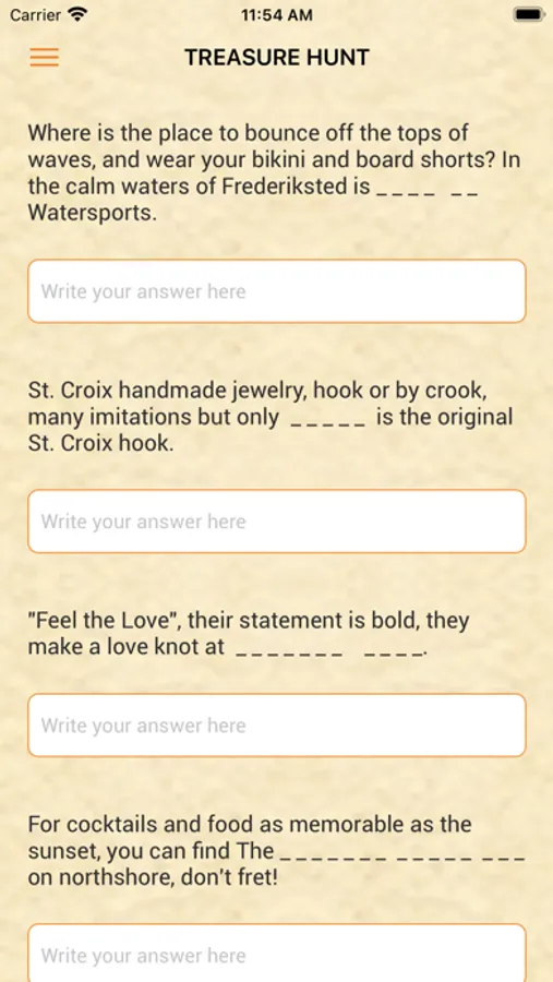 At the top left is the menu bar where you’ll find a treasure hunt (also located in the St. Croix Explorer map magazine). Try your hand at answering all the questions correctly.