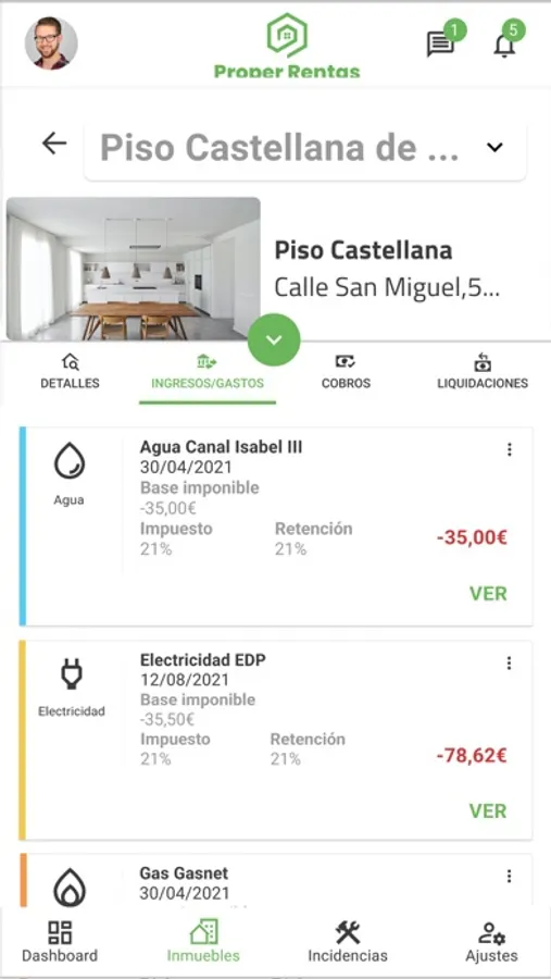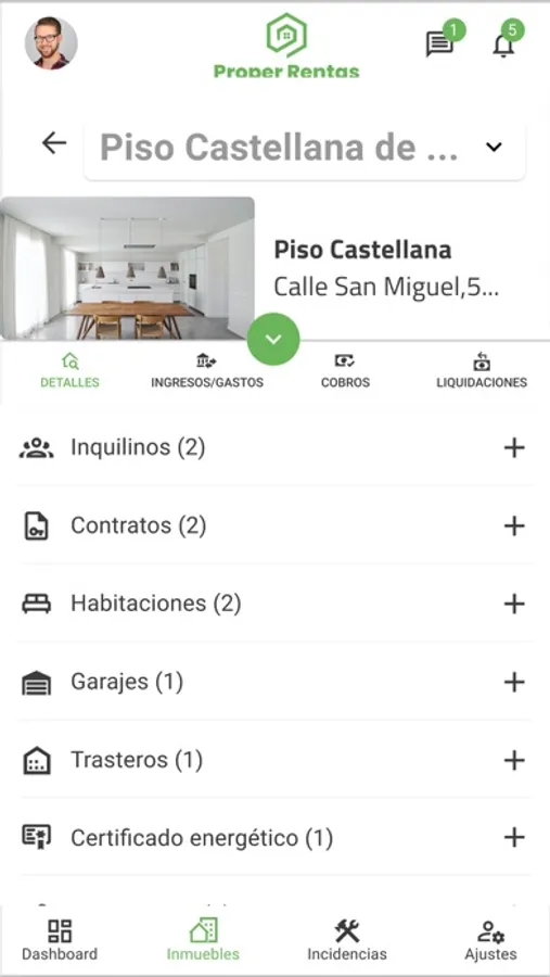 -Ver ingresos y gastos, cobros a inquilinos y tus liquidaciones