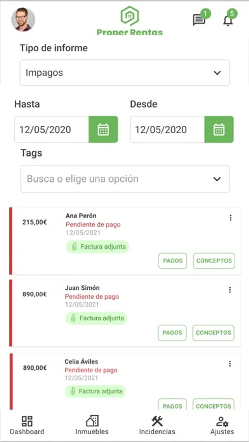 -Ver y descargar Reportes de rentabilidad, declaración de la renta, liquidaciones, impagos…