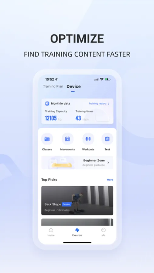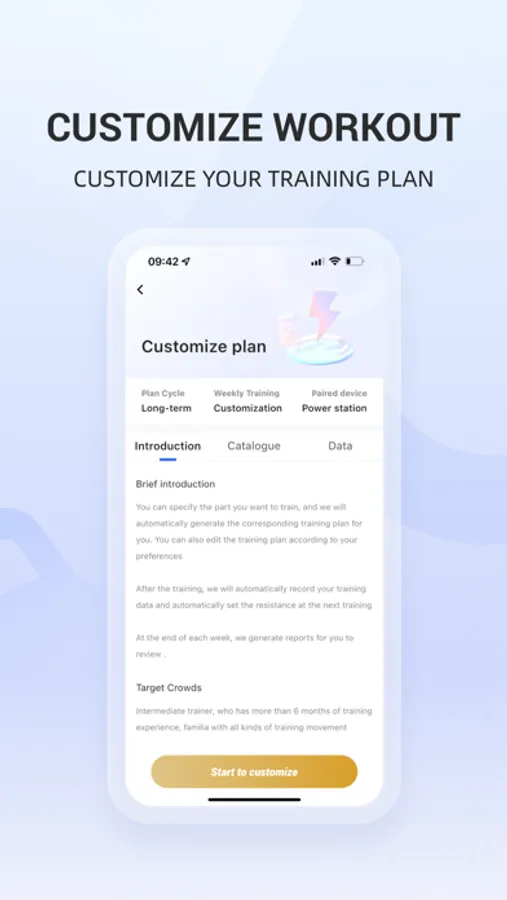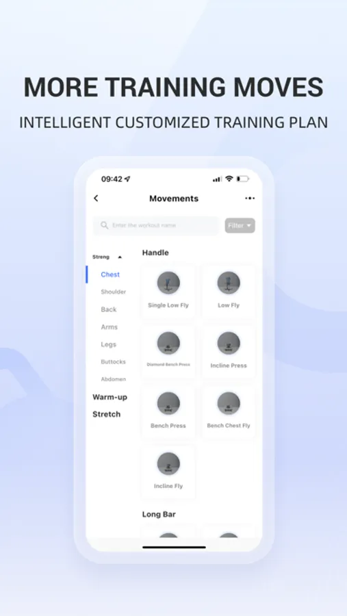 Connect the strength device through Bluetooth, and you can manage and control your strength device