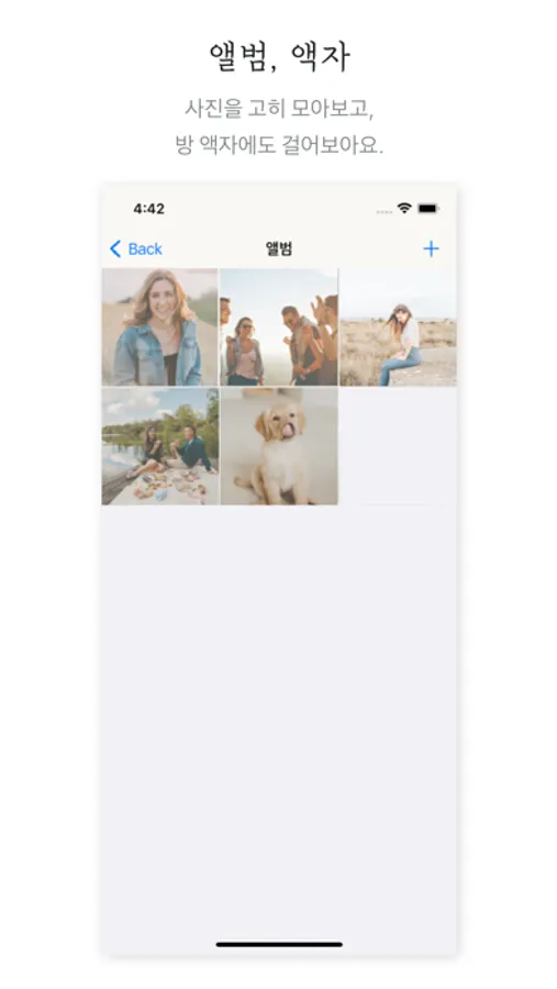 - 앨범 : 앨범그림을 탭하여, 고인과의 추억이 담긴 사진을 업로드해요.