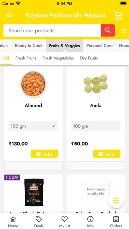 KayGee Pazhamudir Nilayam is a supermarket deals all types of groceries, house hold items, beverage, snacks and branded food. This is a famous store located in thiruverkadu main road ayappakam Chennai. Now they are taking online orders and provide delivery at your door steps