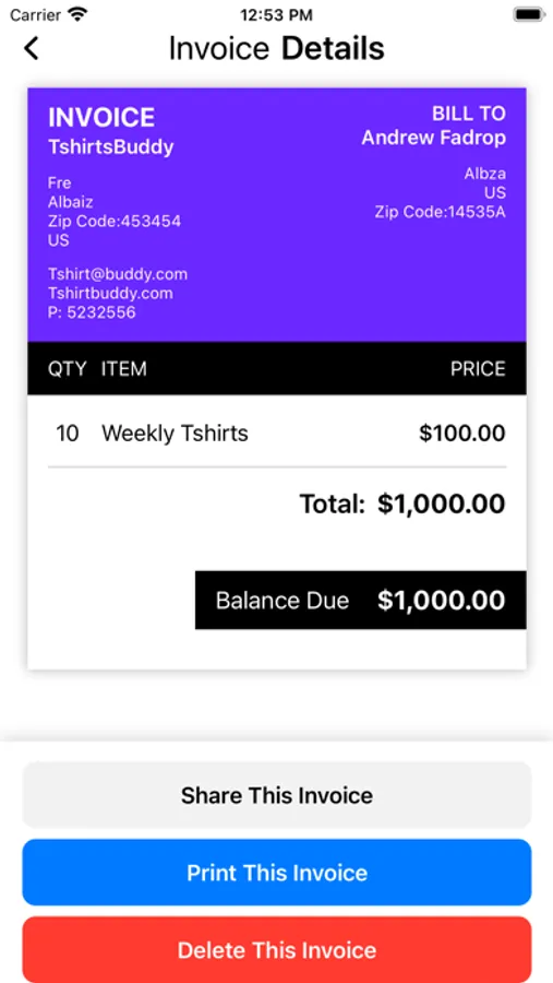 Invoice Generator allows you to create and send a professional invoice in just a few seconds. It's extremely easy to use. This will save lots of your time. You can store your clients information and generate invoices