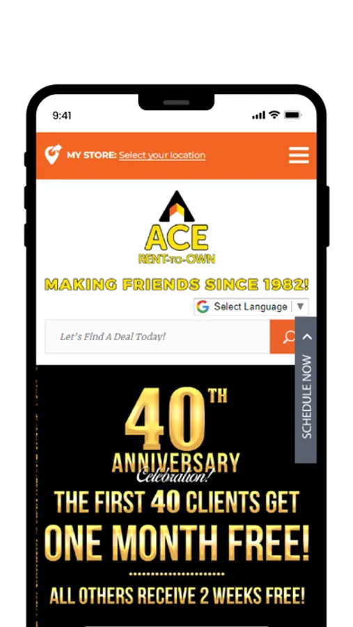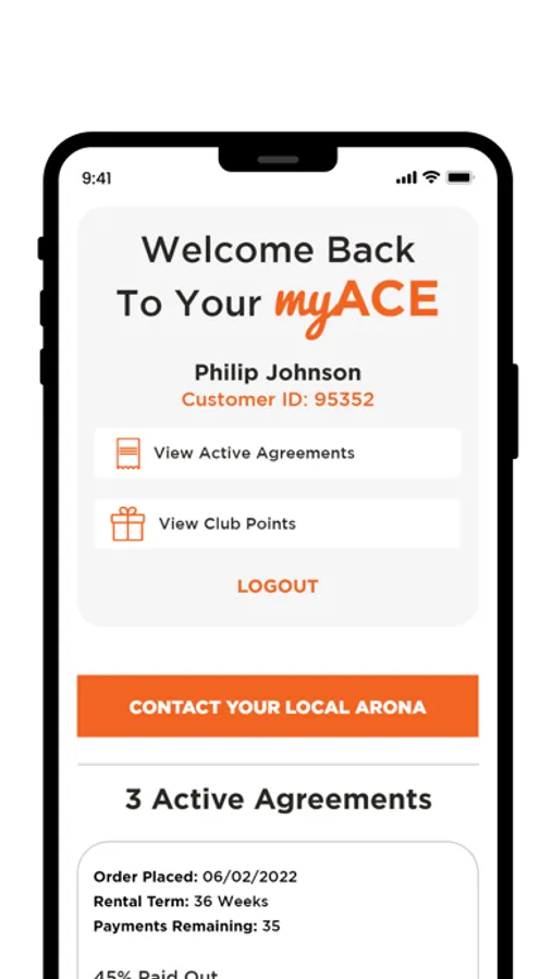 The Ace Rent To Own mobile app allows customers to manage their account , Shop products, Receive discounts, and Contact support