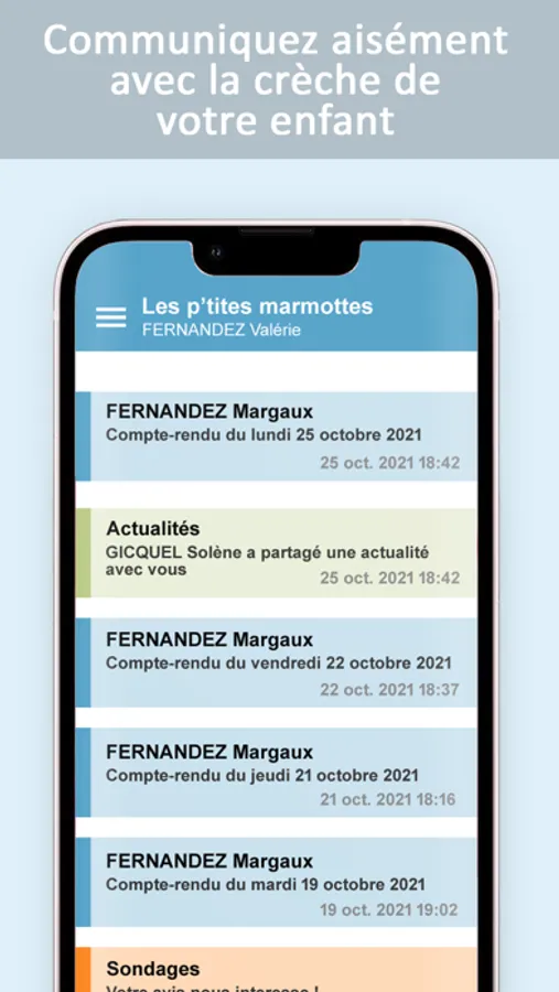 - Recevoir des messages de la direction de la crèche