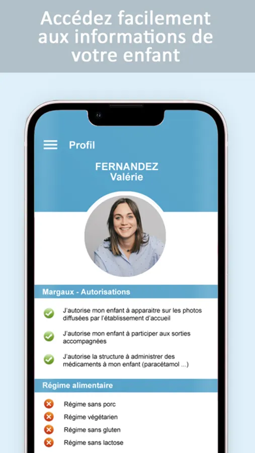 - Retrouver les photos de leur enfant dans un onglet dédié
