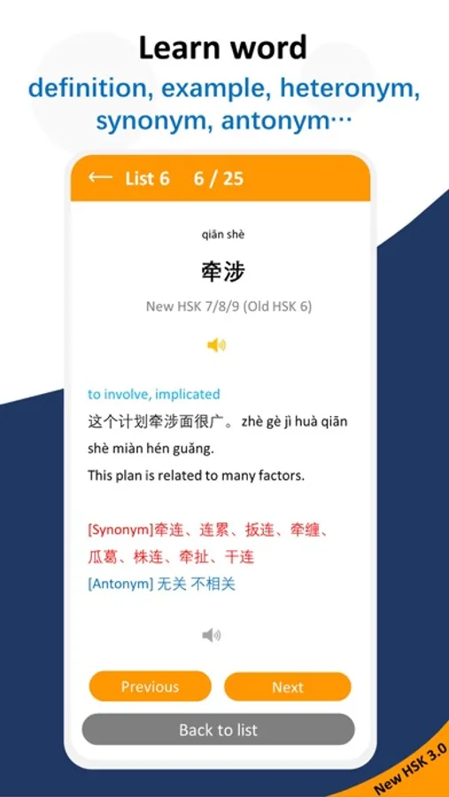 Compared to the old HSK 2.0, HSK 3.0 introduced new Level 7/8/9. Moreover, the vocabularies in each level Changed Greatly! That’s why we developed this New HSK 3.0 vocabulary App.
