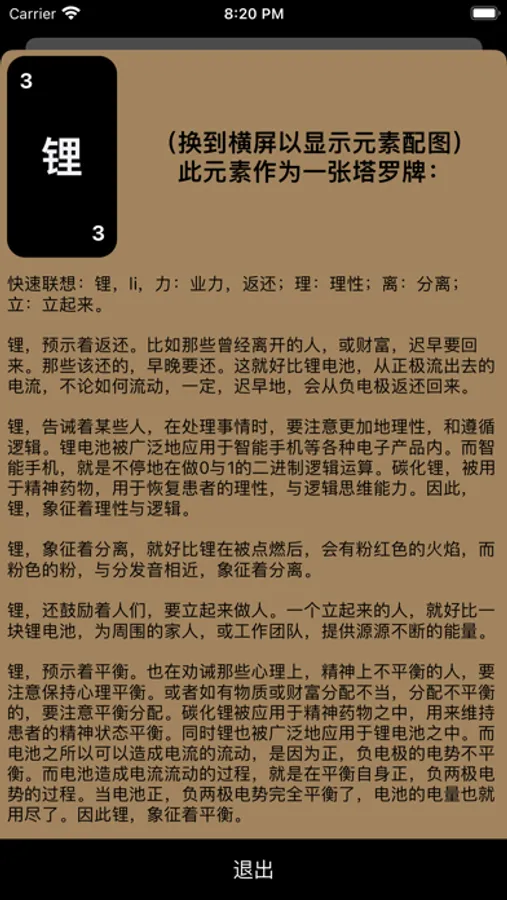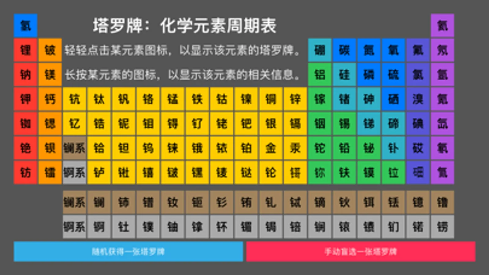 -除了可以被用作塔罗牌以外,还能被当作化学元素周期表来使用,用来查询各种元素的信息。