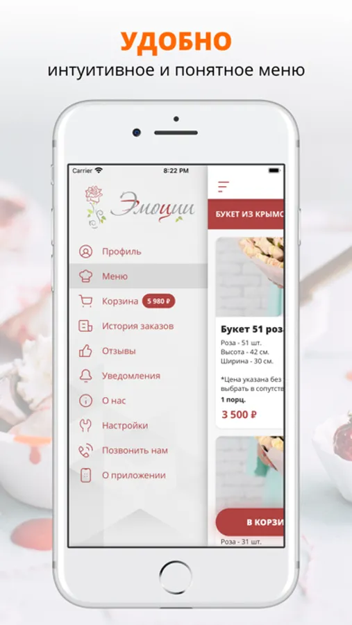 Воспользуйтесь удобным приложением для заказа цветов «Эмоции».