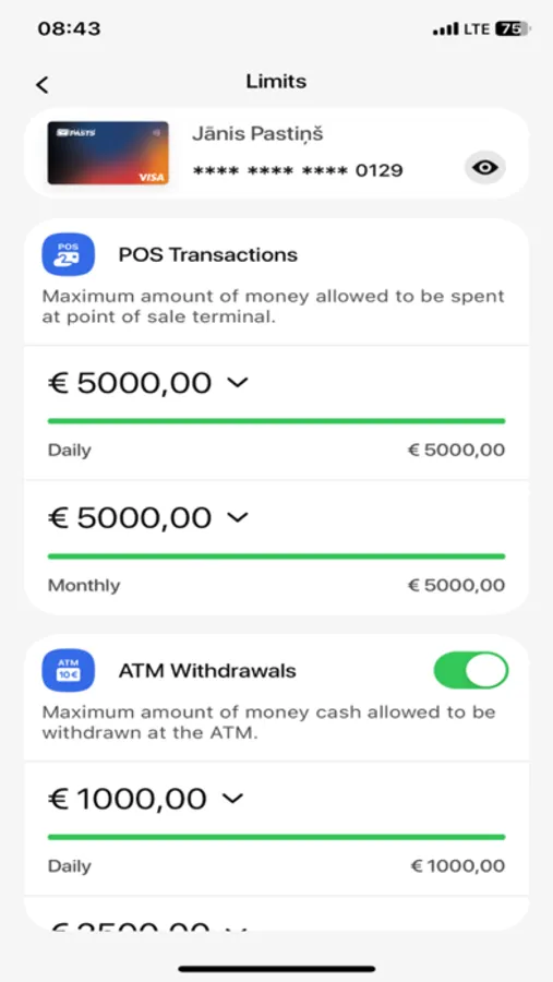 * Iestatiet katrai kartei dienas un mēneša limitus