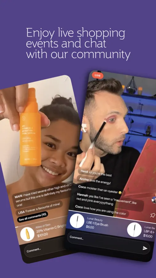 Live shopping events: we regularly host live shopping events and reviews hosted by influencers, creators, beauty experts and makeup artists that give you the opportunity to chat and engage with them, ask questions and learn more about our trends, makeup, beauty supplies, color palettes and proven skincare products, live! Live events are fun, interactive and authentic. They can get crazy and funny too!