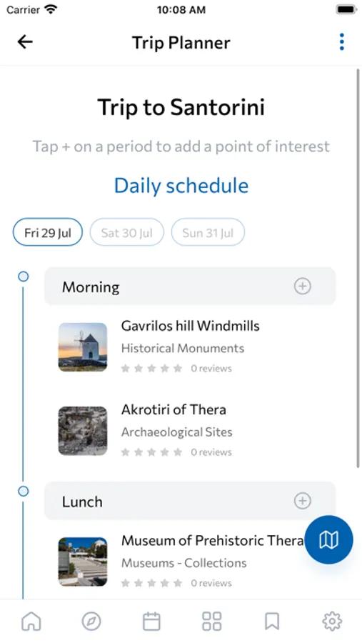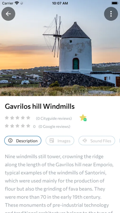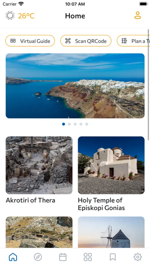 As part of the project a Mobile application was developed, which includes the cultural digital guide of Santorini in two languages (Greek, English). The application provides information for the most important monuments and museums located in the Municipality, for the annual events as well as the cultural events of the island, gives the possibility of remote access to valuable audiovisual cultural material and online booking of tickets for cultural events of the Municipality.