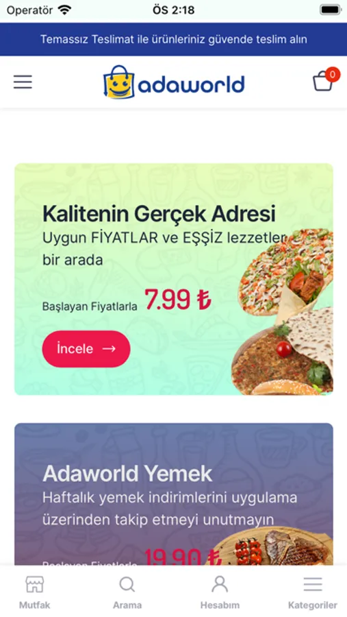 Adaworld Market uygulamasını indirerek yemek ve ev alışverişlerinizi daha hızlı ve daha kolay bir şekilde telefon veya tabletiniz üzerinden yapabilirsiniz. Yapmanız gereken uygulamayı telefonunuza indirerek üyeliğinizi olusturmak ev,ofis veya sokakta nerede olursanız olun siparişinizi istediğiniz yere verebilirsiniz.Uygulamamızda ki kampanyalardan faydalanmak için uygulama içi ve bildirimler sayesinde günlük ve haftalık kampanyalardan faydalana bilirsiniz.