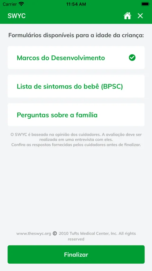O SWYC é um instrumento de acesso livre que foi adaptado para o português brasileiro em 2016 por pesquisadores da Universidade Federal de Minas Gerais (UFMG) e Universidade Federal de Santa Catarina (UFSC) e possui evidências de validade e confiabilidade para o uso com crianças brasileiras. Todos os questionários que compõem o SWYC foram incorporados no TEDI e permitem a triagem de atrasos do desenvolvimento; problemas comportamentais, Interação Social; preocupação dos pais com o desenvolvimento e comportamento da criança; fatores de risco no contexto familiar (uso abusivo de álcool e drogas, insegurança alimentar, depressão materna e conflitos familiares). O questionário para triagem de atrasos do desenvolvimento consta de 54 habilidades esperadas para crianças de 1 a 65 meses de idade. Foram criadas vinhetas ilustrando cada um dos itens e que foram incorporadas ao aplicativo facilitando a compreensão dos pais e dos profissionais.