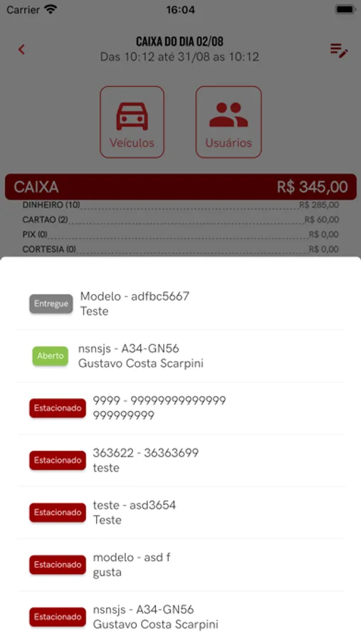 Permite o controle dos veículos, caixas, manobristas e clientes.