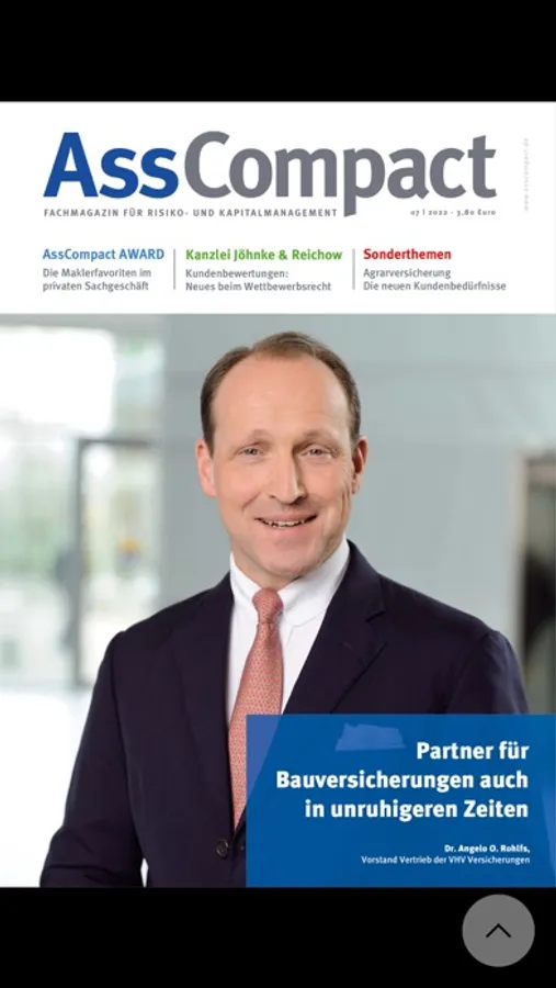 AssCompact ist ein monatliches Fachmagazin für Führungskräfte und Entscheidungsträger der Finanz- und Versicherungswirtschaft. Der Fokus liegt auf unabhängigen Vermittlern, Mehrfachagenten, Finanzdienstleistern, Vermögensverwaltern und Bankberatern.