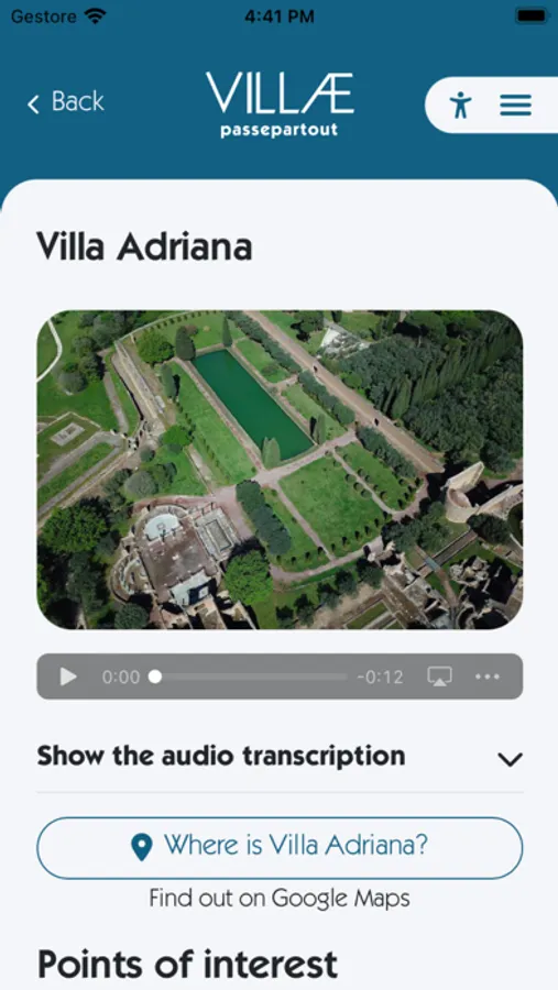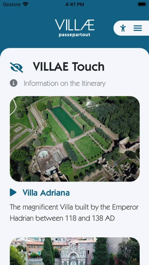 A general itinerary through the Villae using video guides in Italian Sign Language and International Sign Language.