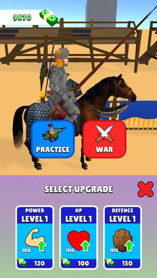 Fight against the knights to please the king. Practice and upgrade your armor.