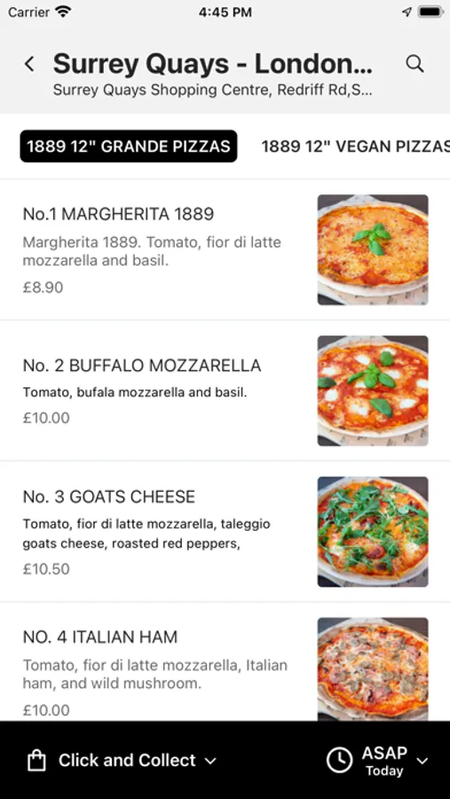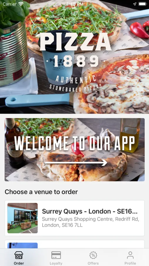 You can easily order your food & drink through the Pizza 1889 app and collect it from a local Pizza 1889 shop - simply choose the items from our menu, pay through the app, and collect at your selected time.