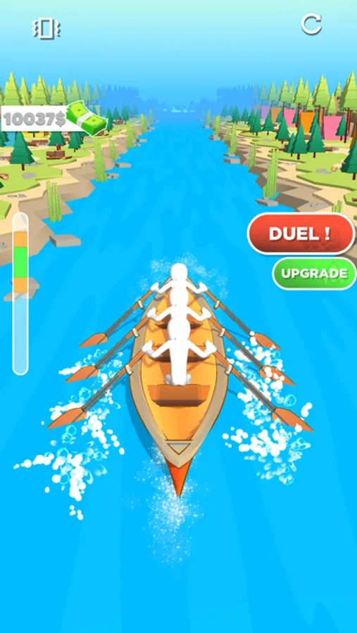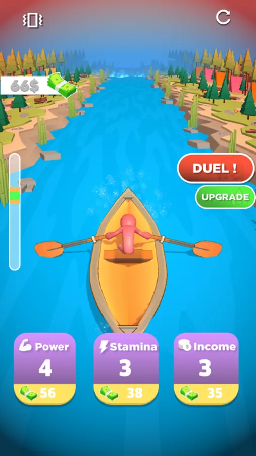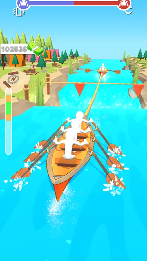 Pull the oars, improve your stamina and strength, and roll opponents off the cliff!