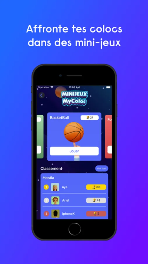 Découvrez une nouvelle manière de vivre en colocation grâce à notre application ! Les mini-jeux ajoutent une dimension amusante et compétitive à votre expérience. Affrontez vos colocataires dans une série de défis divertissants tels que le basketball, le football, le mini-golf, l'incognito et le plus proche. Montez au sommet du classement national des colocations en travaillant ensemble pour atteindre la première place.